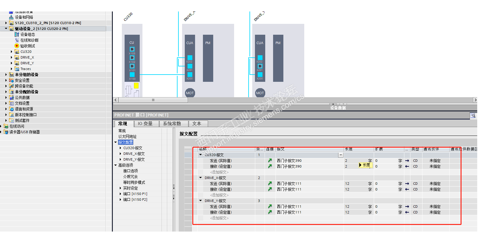 控制单元cu320,带两个pm240轴 做epos定位,starter可以将控制单元的390报文配置到非循环里,startdrive里我没有找到怎么做呢呢 求指教!!