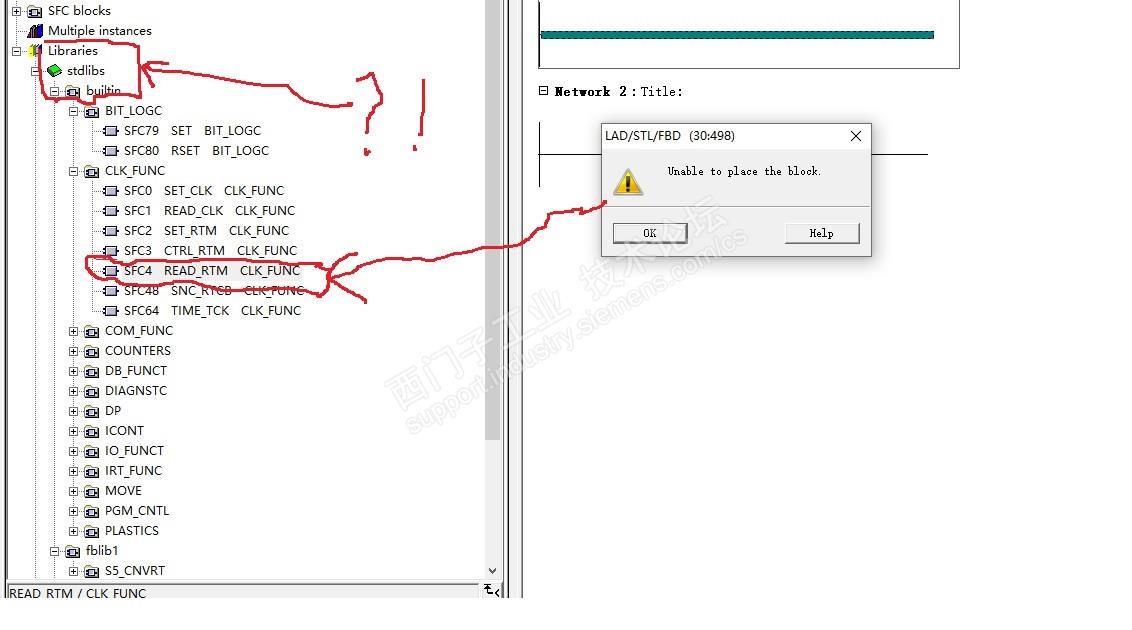 本人想用库文件READ_RTM CLK_FUN的SFC4功能,但无论双击或拖拽都不能成功!请教各位,如何使用?