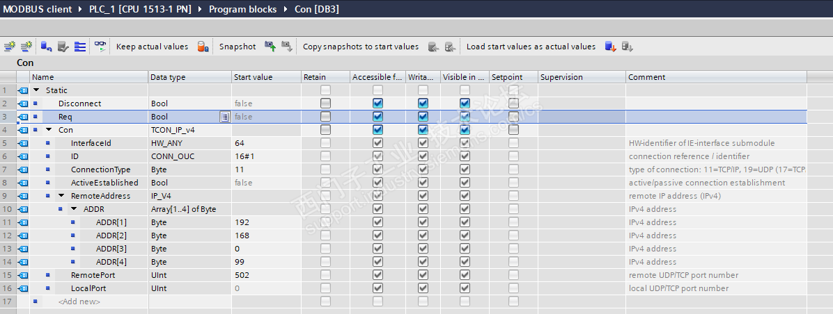 各位大佬,小弟在学习关于modbus的知识,在模拟modbus TCP client的时候,卡在了16#80BB这个错误的地方,请问各位大哥,怎么解决啊。看了F1帮助,说是非法半径规格,不是很明白什么意思。