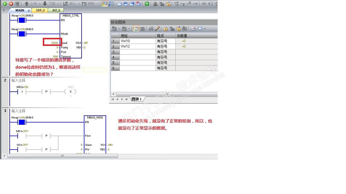 而利用这个ctrl完成位,触发M0.1并不是ctrl的完成位特性,而是根据程序的扫描机制,就是你说的第二个周期触发现象。由此,真好手头上有硬件,我修改ctrl的特性频率为19200(特意错误的特性频率),看ctrl的done位情况,图示: