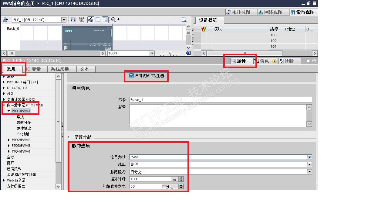 1) 组态S7-1214C的PWM输出的硬件组态: