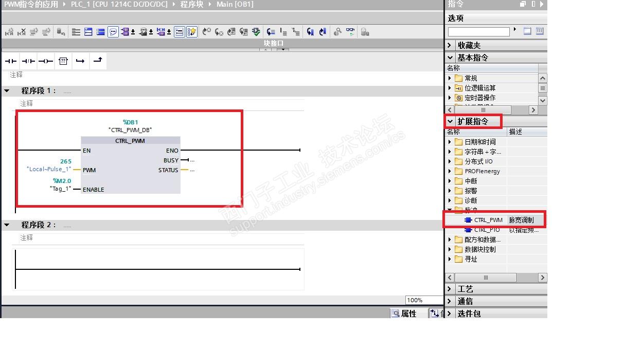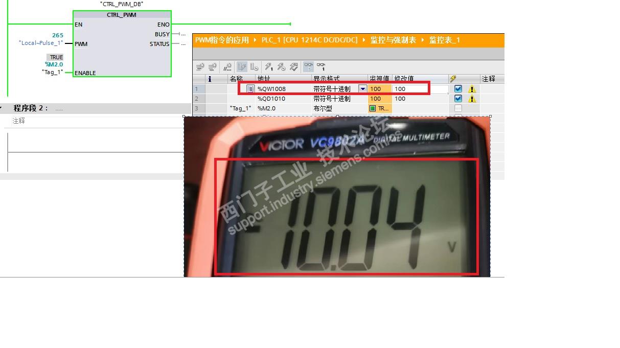 测试PWM发生器为s7-1200(S7-1214C),用Q0.0连接到转换板的PWM输入端子,用万用表测量PWM转换的电压输出数据端子。