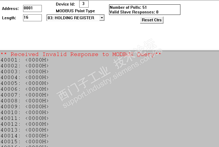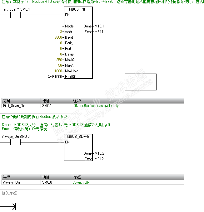 在将 s7 200 smart作为从站,然后预先写入数据块的情况下,使用modscan来读取寄存器的内容,但是出现了recieved invalid respose to modbus query。因为是刚入手研究,所以将代码和modscan的设置信息发出来,请问具体是什么问题。