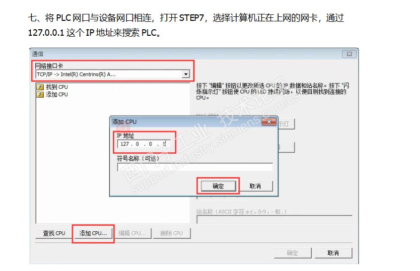 step7 v5.6版设置PG/PC为电脑网卡,能在STEP中指定访问固定的IP地址用来下载和在线监控PLC吗?因为远程模块要访问厂家设定好的固定IP地址。如:127.0.0.1。不知哪里可以设定,谢谢大家!附件中的界面哪里进去?如果能实现自动搜索CPU并设置IP地址就会了。