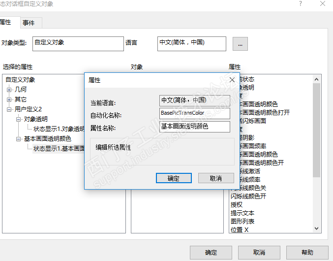 其他的比如按钮,I/O域可以通过创建自定义控件-选择用户自定义-选择控件名-双击选择需要的属性,这时在自定义属性中会出现属性,右击选择属性就可以看到该属性的脚本属性名