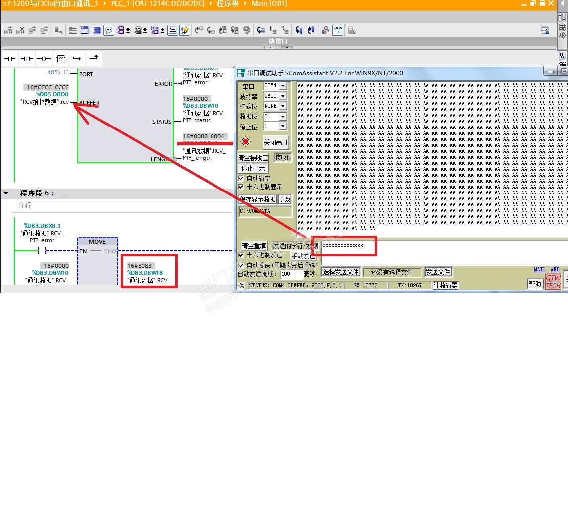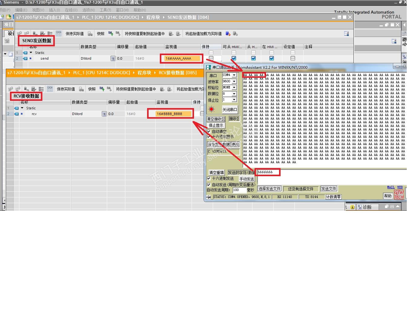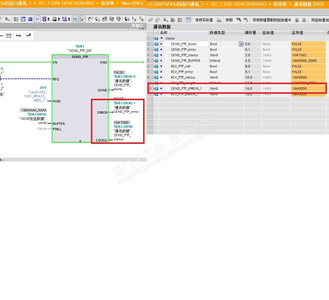 西门子S7-1214C与三菱FX3U自由口通讯案例