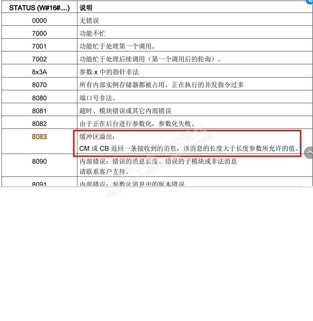 9) 查看RCV_PTP指令的错误信息16#8083: