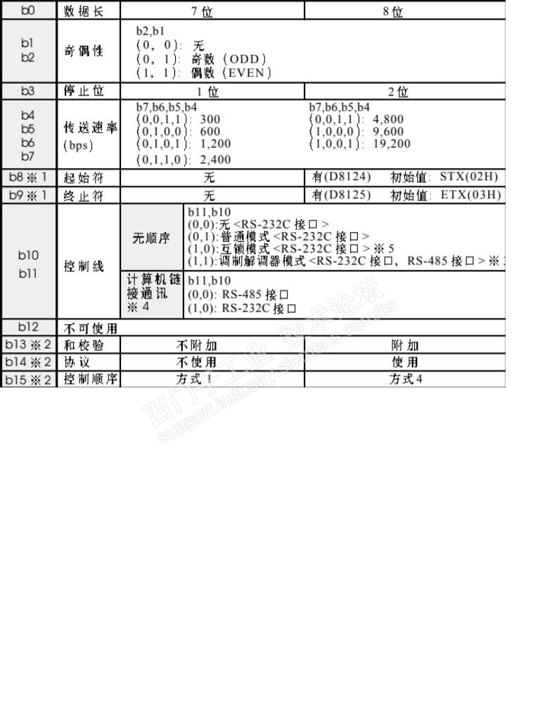 10) 三菱FX3U自由口(无协议)通讯,D8120,M8161的主要通讯参数解释: