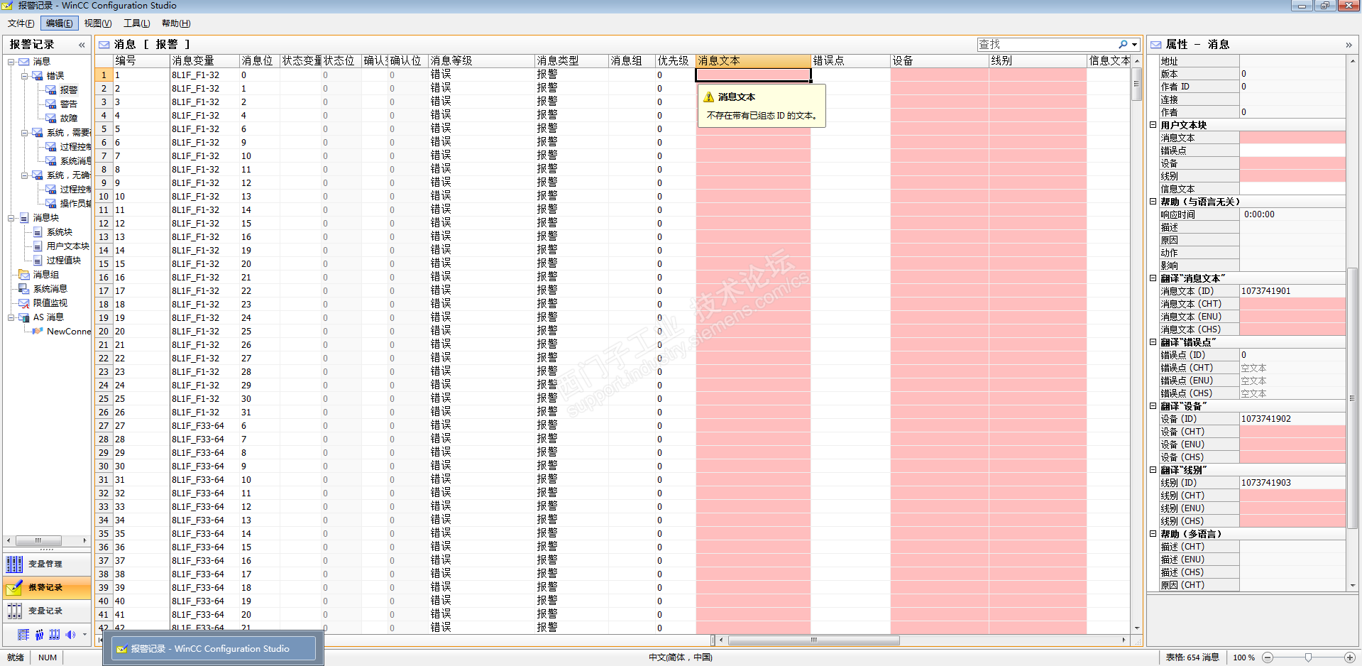 然后关闭报警系统对话框后再打开,还是报警“不存在带有已组态ID的文本”