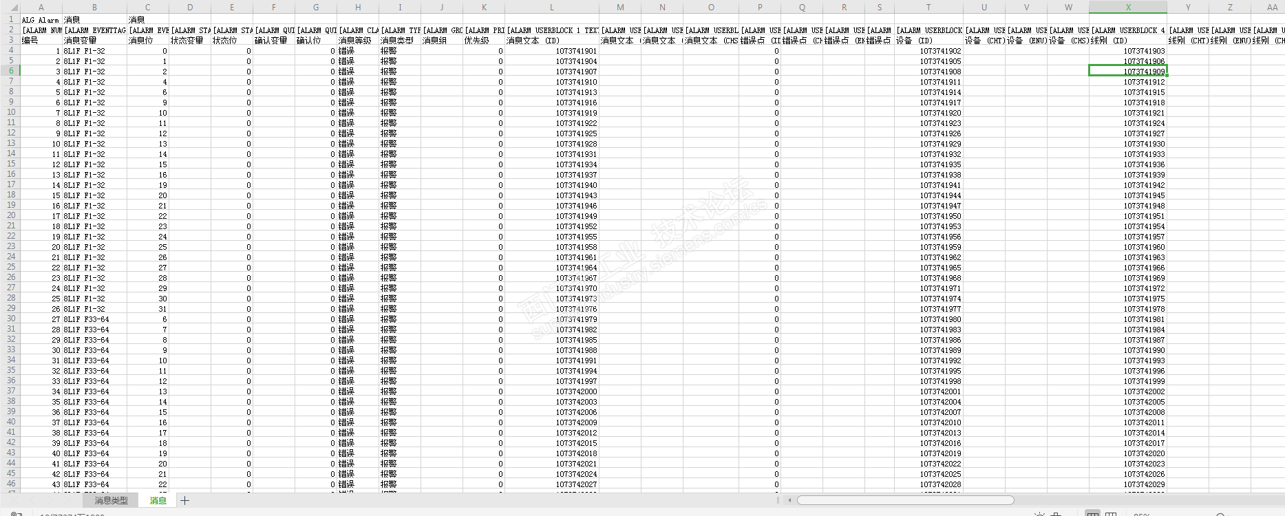 这是将上面导入的报警再次导出来的文件,发现消息文本信息不见,ID号也由200变成了1073714901,而不是变成160: