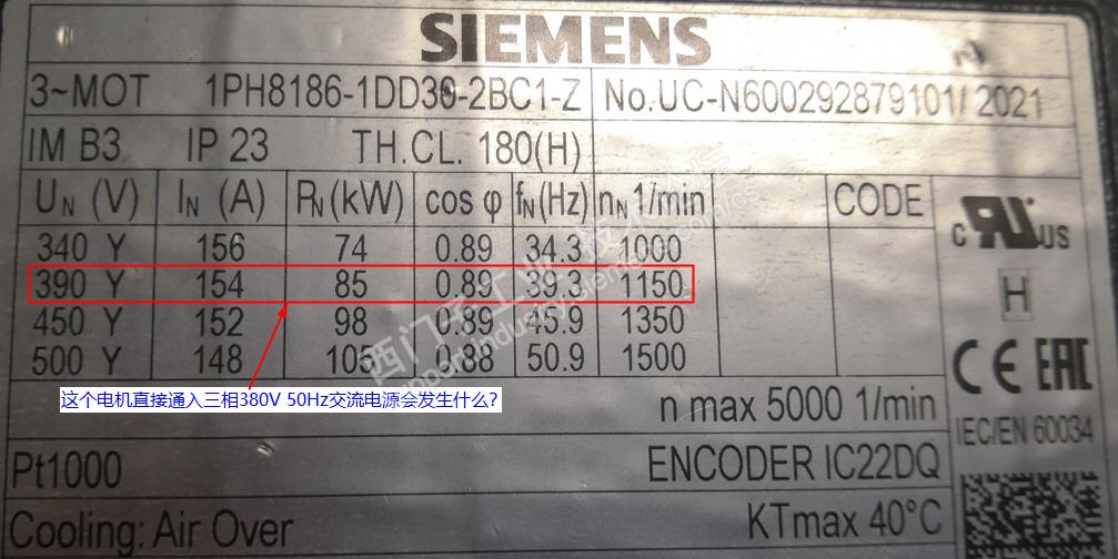 我想请教各位大侠,下面这个西门子电机本来是通过S120驱动的,我就很好奇如果直接通380V三相交流电会发生什么?是不是要烧毁?