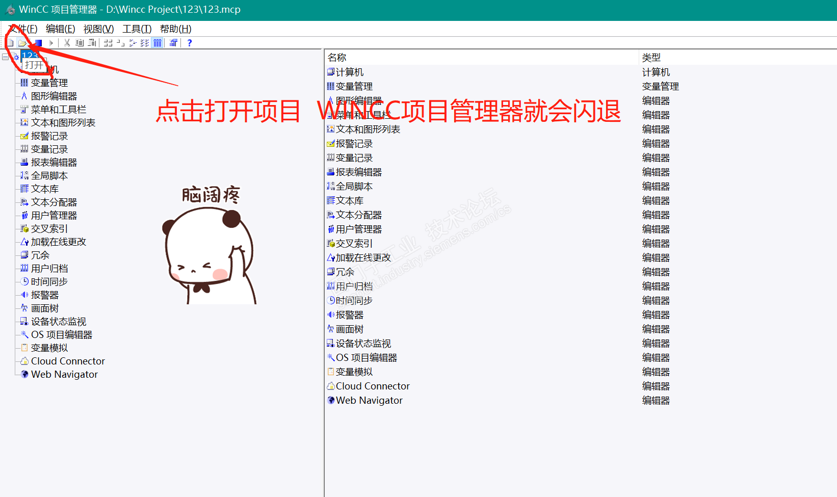 安装好WINCC 点击打开项目 WINCC项目管理器就会闪退