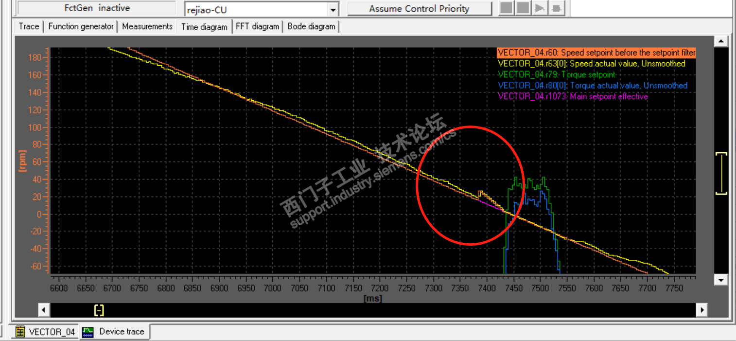 中板热矫直机, 发现只要投入预控, 降速时,快到零速是, 速度给定会有一个小的阶跃。 不投预控(P1496=0), 是没有这个小阶跃的。这是什么情况
