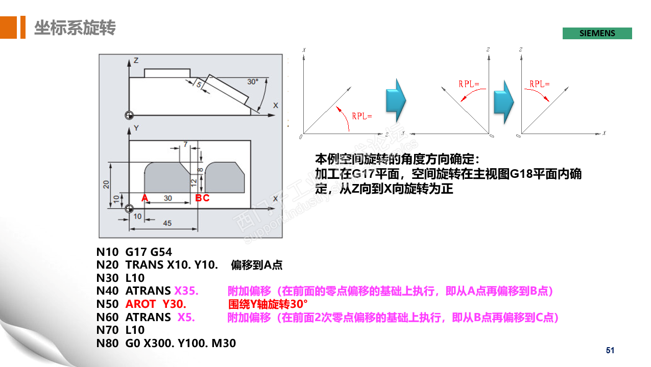 如图,空间坐标系旋转后,要加工斜面特征,势必主轴也要同时偏转相同角度,此时是否需要把斜面坐标原点找到旋转后在坐标系原点上,还是系统会自动计算?(按我的理解,坐标系空间旋转后仅仅是坐标系,刀具路径还是得按平面坐标系一样先找原点再加工)