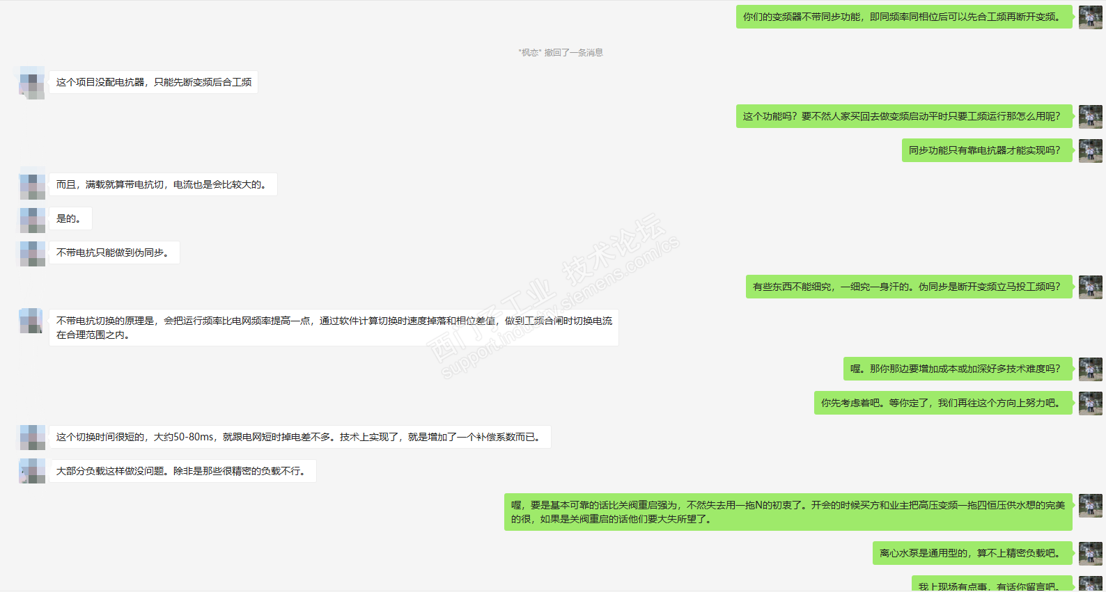 你那个变频器厂家的人始终没理解:不带电抗器可以先合后分。西门子的GH180可以选择带电抗和不带电抗切换,我前面的那个应用就没有电抗器,大功率变频应用的电抗器很大,而且这个电抗器短路阻抗一般要选10%,那体积就更大了,可以不选,那谁会选。