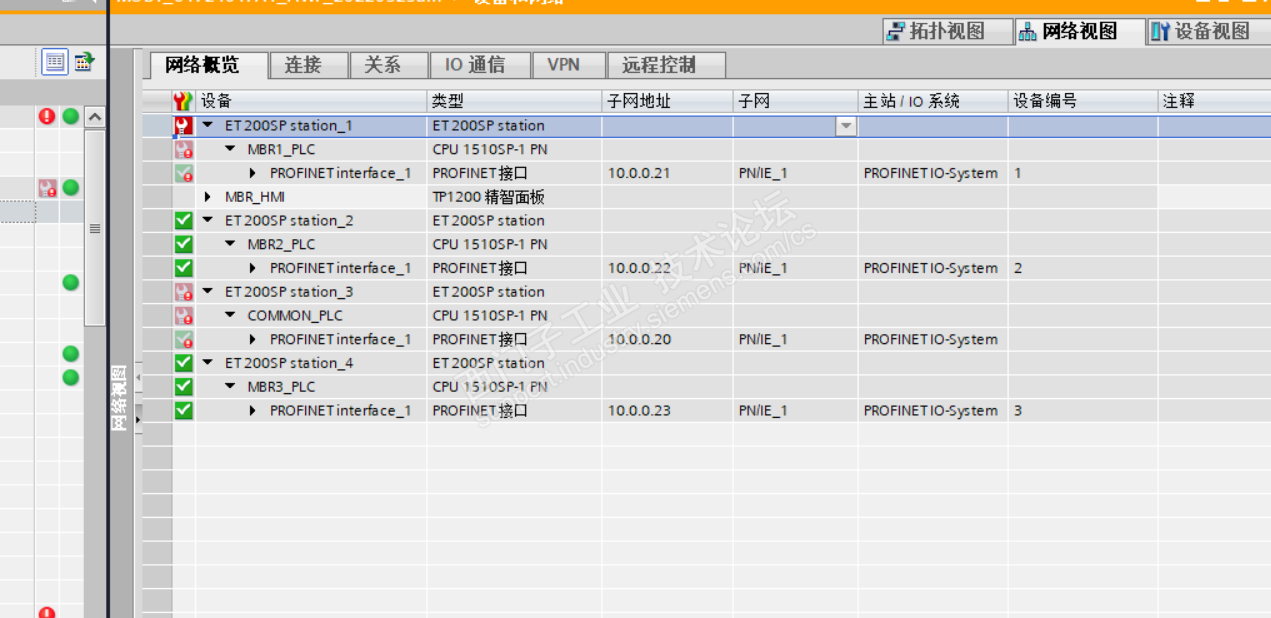 一台ET200SP 作为IO 控制器,另外三台作为IO设备,中间通过XC204交换机。进行IO 通讯时候,三个IO 设备一直反复出现断开连接,自己恢复,几秒钟后又断开,如此一直反复?