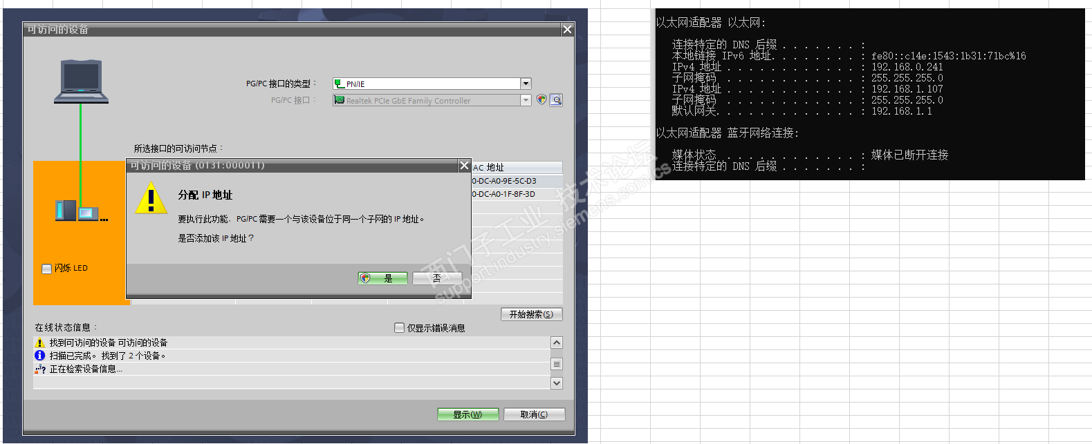 第三,点击可访问的设备,弹出分配IP地址,后面就可以了,后面用ipconfig,能发现已经有两个不同网段的IP地址,问题已经解决
