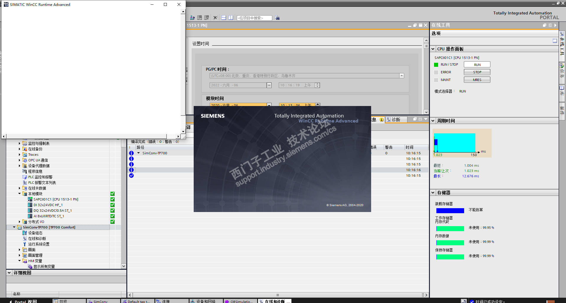 我的第二阶段程序在测试时,发现HMI编译通过后,HMI仿真运行自动退出,且无错误提示(之前是可以启动的,不知道什么原因造成的)。把程序重建后,反复测试了几次之后,还是没找到原因。