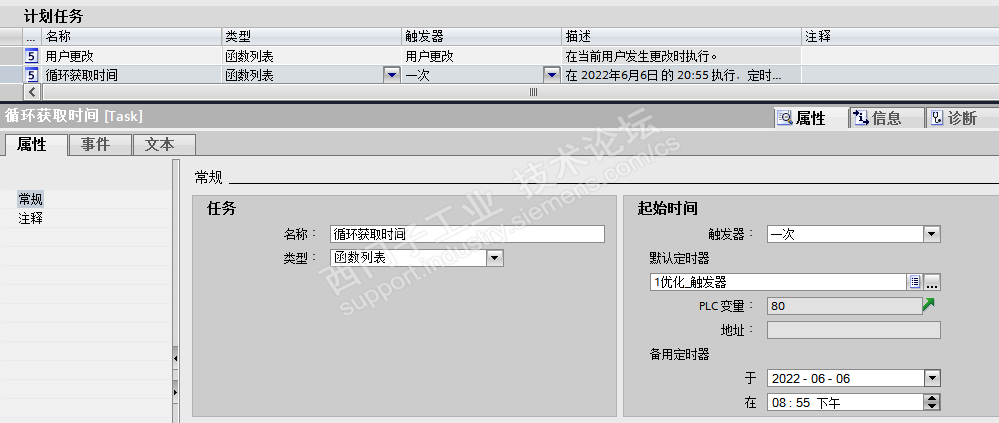 加一个梯形图。每次开机时间没有获取,不启动触发器。获取时间后再+0.5S更新触发器