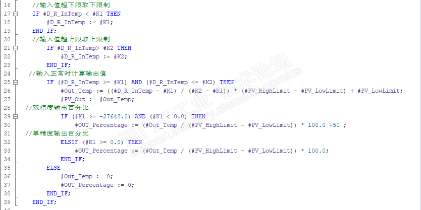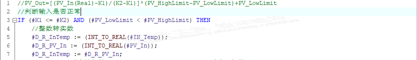 PV_Out=[(PV_In(Real)-K1)/(K2-K1)]*(PV_HighLimit-PV_LowLimit)+PV_LowLimit