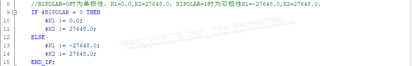 极性选择,其实单双极性就是对应的K1值的不同,即单极性K1=0.0,双极性K1=-27648.0;选择不同的K值代入计算公式。