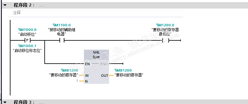 已搞定,此贴终结,按图所示程序编写即可,MB1200内的位除了M1200.0不可用外其余7个位均正常,每次移位都以M1000.0的状态置零或置1。