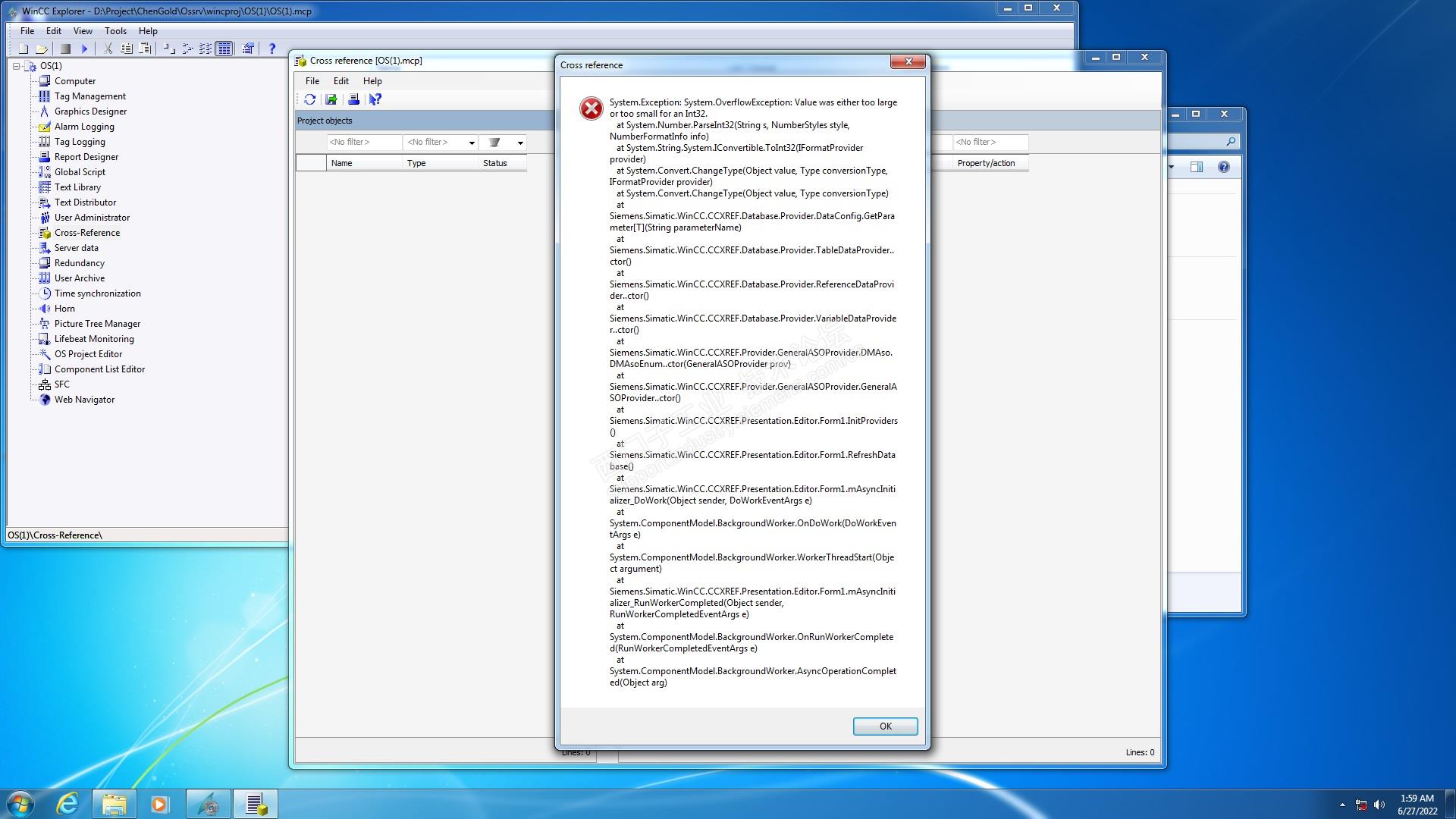 最近不知什么原因,打开WINCC CROSS-reference时,老是出错,不知是什么问题