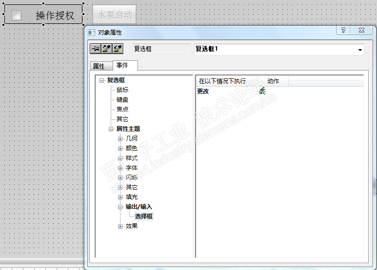 1.1在需要增加操作授权的指令控件旁边增加一个复选框控件并命名为操作授权。在复选框事件中添加C脚本动作: