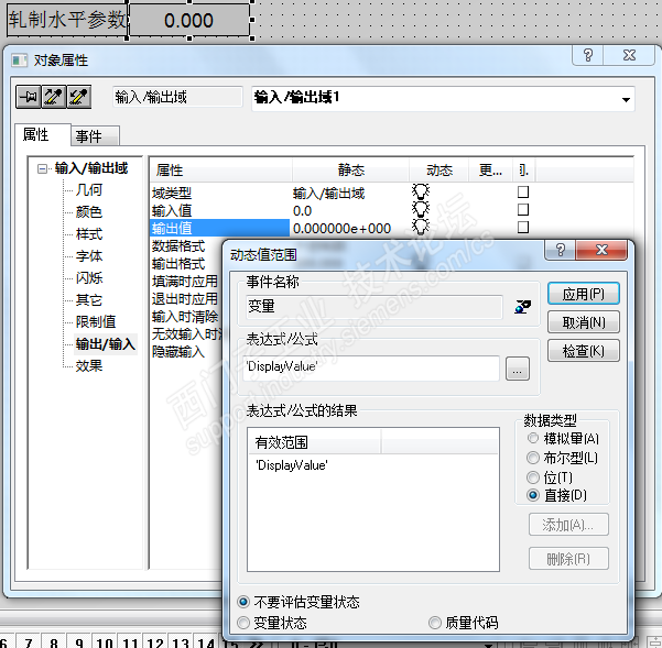 2.1在原参数设置输入输出域增加“DisplayValue”和“TempValue”两个数据。