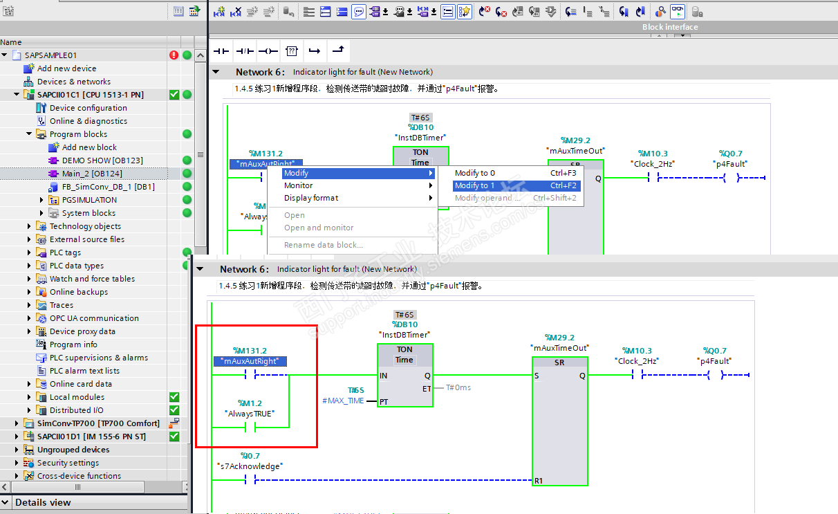 无法强制M131.2 为什么?BYPASS M1.2后为什么P4fault 没有2HZ的闪烁?