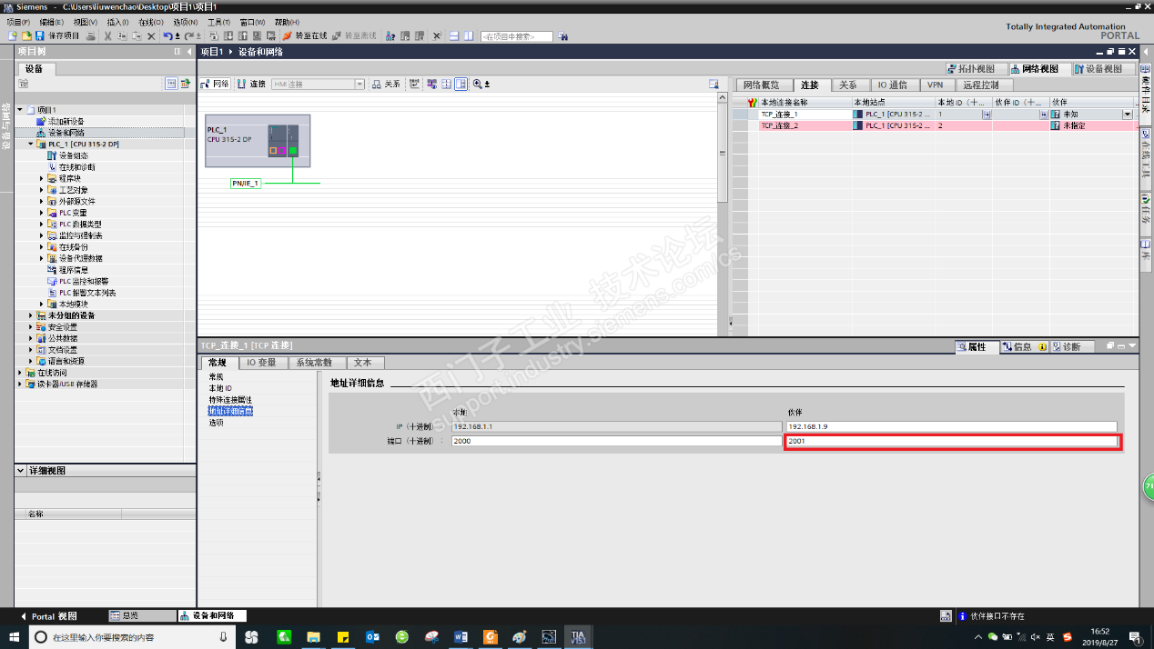 1、在设备视图中建立2个TCP联接,作为与欧姆龙PLC进行读写的通讯。
