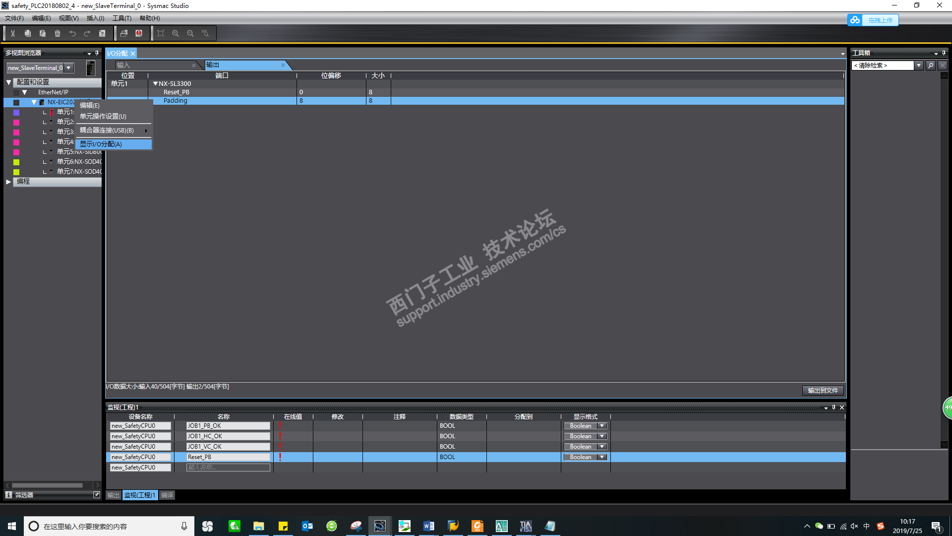当安全PLC组成为NX-EIC202耦合+SL3300+SID800*4+SOD400*2