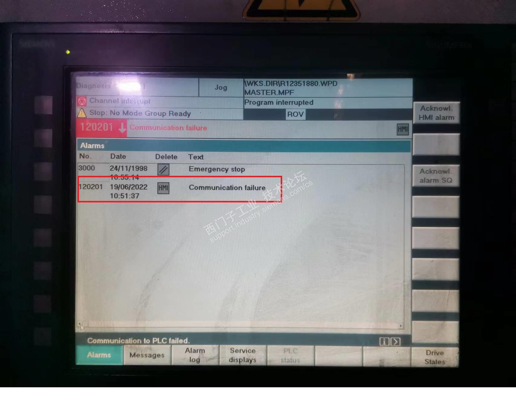 报警信息中,主要是120201#错误,主要是HMI的通讯错误引起。按MCP面板是reset键,无法消除这个错误。查看MCP面板看电源及通讯连接,并没有晃动引起的接触性问题。线路均用尼龙扎带紧固到位,德国设备电气安装相对还是比较做的完整到位的。一时也无法找到可能的怀疑点,只能拿出我是大招了,断电重启。到控制室总控制柜,没有看到可疑的电气运行和报警指示灯亮起,果断的关闭设备电源总开关,进行断电操作,稍后再重新合闸,耐心等待启动完毕。等待总是那样的急迫和焦虑,几十秒的等待总是显得那么的漫长。系统文件一个又一个的启动完毕后,急迫的再次打开诊断信息,看120201#报警是消除了,再次按系统启动按钮,设备静悄悄的没有半点反应。