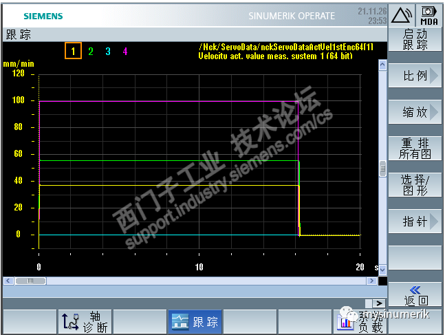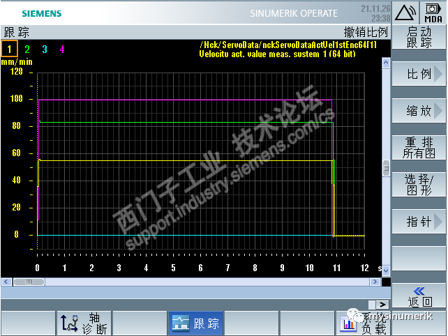 对比上面的跟踪,能看到明显的变化,同样,我把各轴的速度写在这里