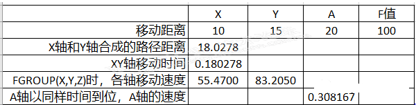 NC指令中有个FGROUP,与此相关,FGROUP(X,Y,Z)含义就是X,Y,Z轴分配F值,而非FGROUP的轴,按插补关系同时到达终点。