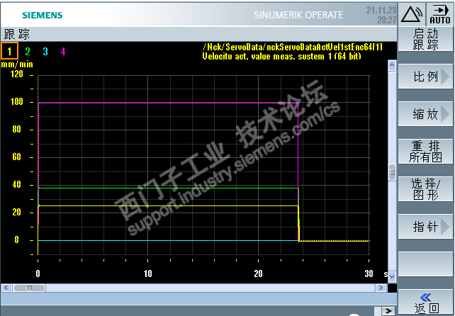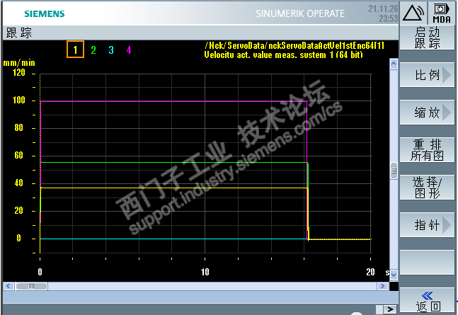 首先我们看到,程序的运行时间明显延长了,再看看伺服跟踪得到的各轴速度:
