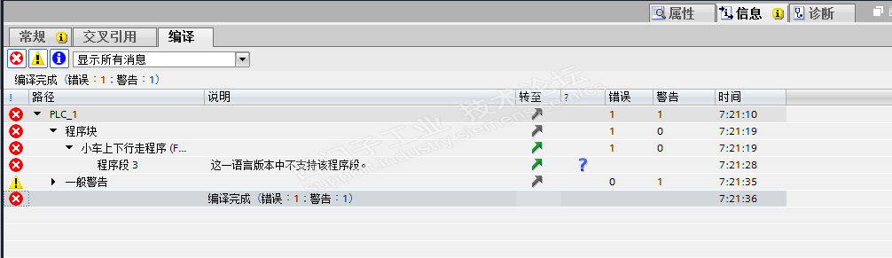 如上图所示,在编译时,没有通过,说不支持。我没看明白是哪里不支持,请大佬帮我看一下,我这个是1500系列的PLC,用的是博图14