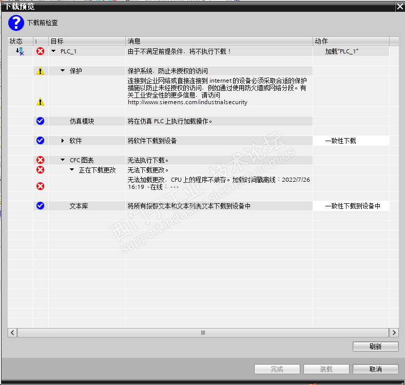 仿真只有新建项目第一次可以正常下载仿真,一旦在CFC图表进行修改,就再也不能下载了。