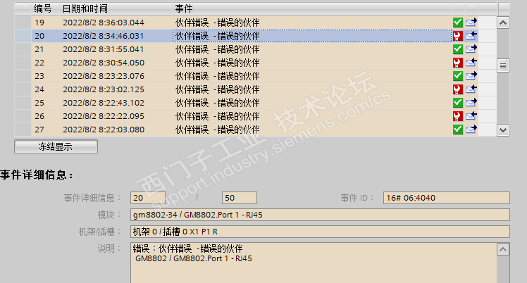 使用了拓扑视图,且接线是没问题的,通电一晚上,中间会有两三次频繁的报“伙伴错误”,后面又会自动连接上了。
