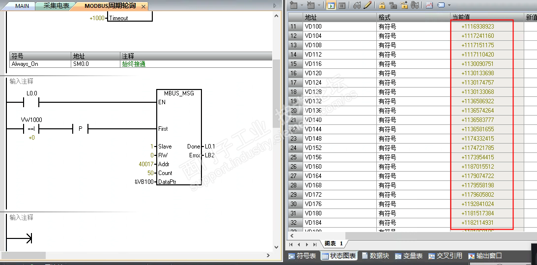 另外,楼主监控的变量地址应该是VW2000,而不要用VB2000。