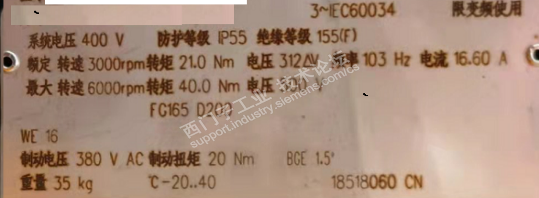 我们用cu250驱动过类似的电机,贴一下铭牌。