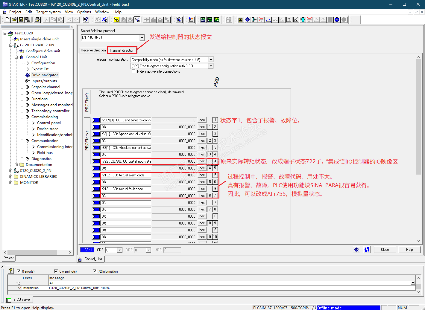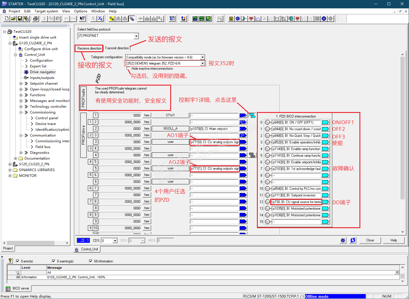 展开PZD1的控制字1,就看到所有控制位。如果有7xx的参数,就是有端子DIO,AIO信号的连接。