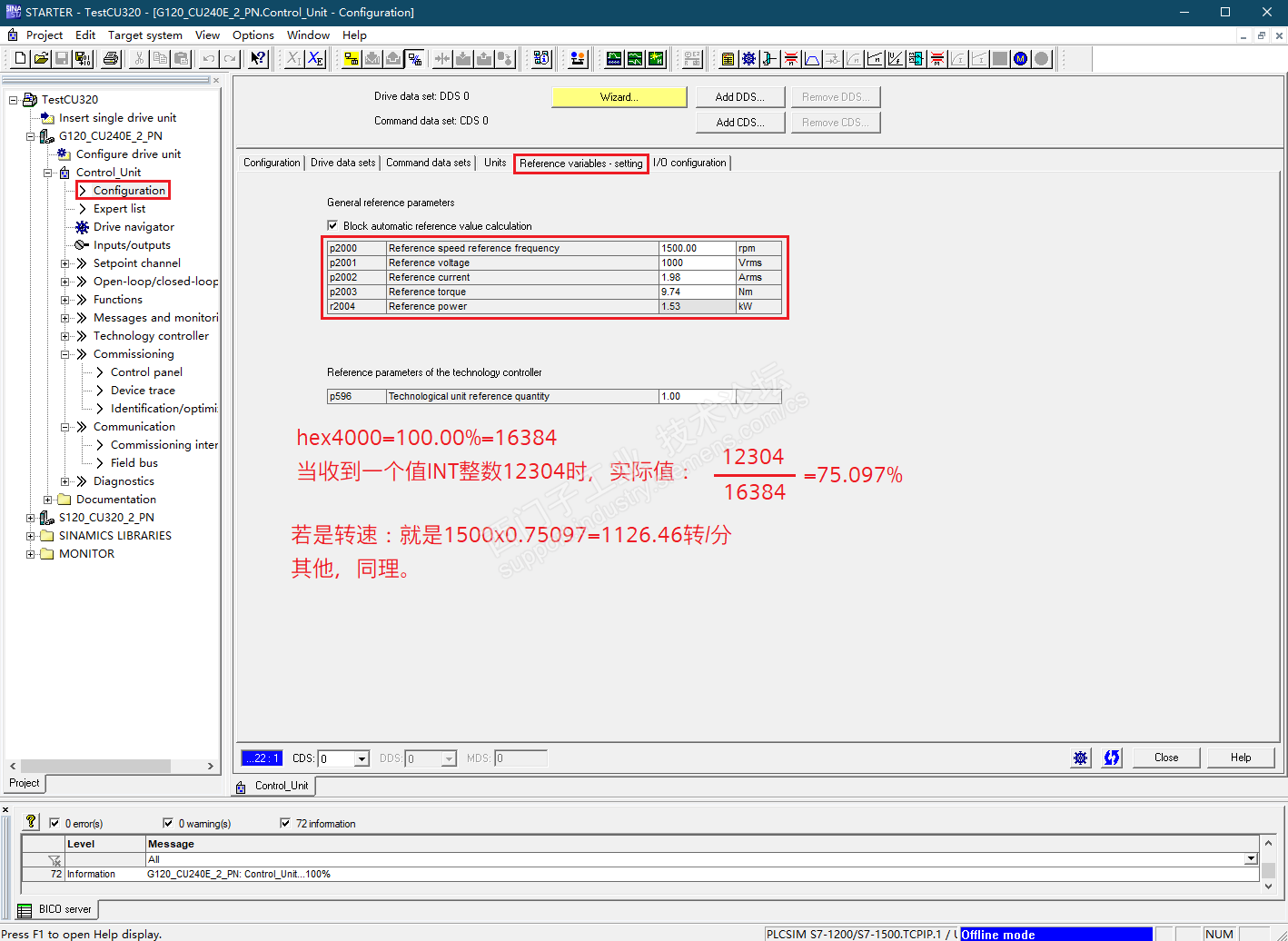 联机或上传驱动参数集到STARTER项目中。离线查看。