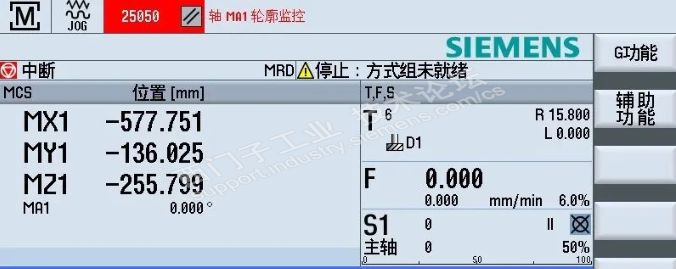 诊断手册中对于“25050 轮廓监控”的描述从字面意义上直接地说就是:当一个轴的位置环生效后,如果 NCK 计算出的插补给定值点与实际到达点之间的误差超过轴监控数据 MD36400 中规定的公差带后,就会出现“轮廓监控”报警。更简单地说:轴的位置没到。