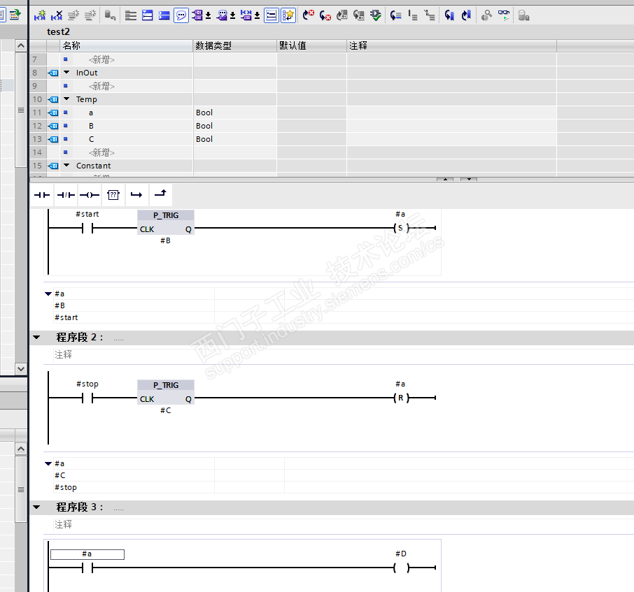 如图 我想控制a的 置位和复位 但是这个a 是临时变量 再M540.0为1时候 a为1 但是M540.0为0时候 a为0 但是换成实参情况下 就可以一直置位 我想过应该和数据刷新或者存储有关 但是不清楚。有没有办法用临时变量来完成 不用到实参