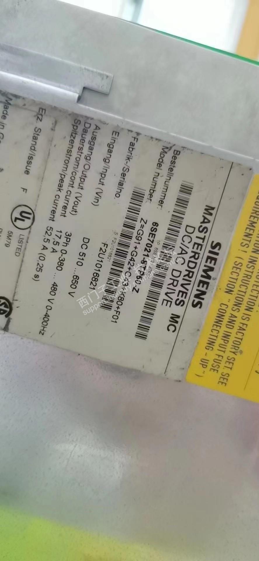 求助下大家,公司设备上有两台西门子变频器故障,型号分别为6SE7021-8TP50-Z和6SE7021-8TP70-Z,维修后离线测试驱动电机运行良好但是上机后就会分别报警F063和F054,咨询西门子客服工程师告知F063报警为授权pin码丢失,F054为编码版初始化错误,但是重新导入pin码之后未解决,查询参数也没找到异常,咨询下大家解决方案,谢谢。