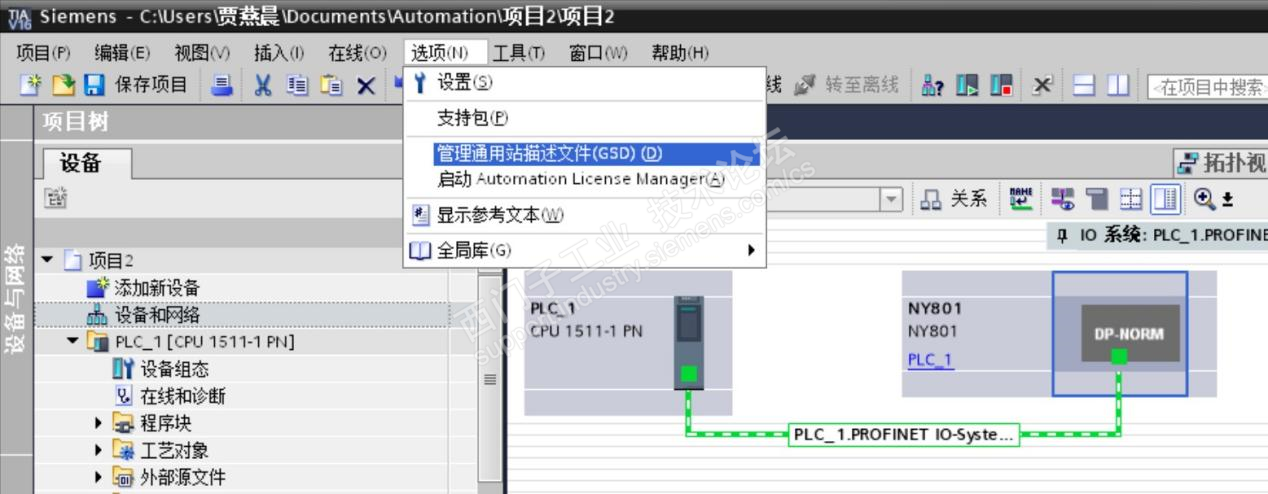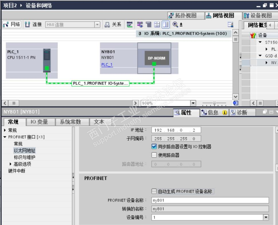 打开博图软件新建项目,并添加 1500PLC 设备,加载耐用免费提供的GSD文件在设备视图里找到刚才安装的设备NY-N801;
