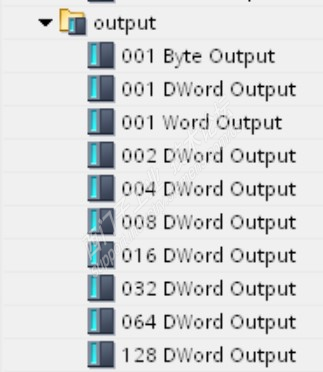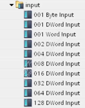 5、根据设备传输的数据长度选择,需要大于等于所传输的数据程度即可,本案例选择32双字输入输出,组态下载到PLC;
