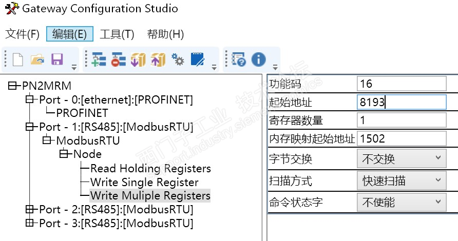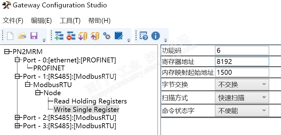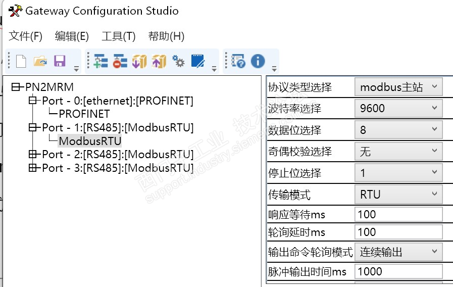 8、Modbus转Profinet网关的Modbus485参数配置 ;