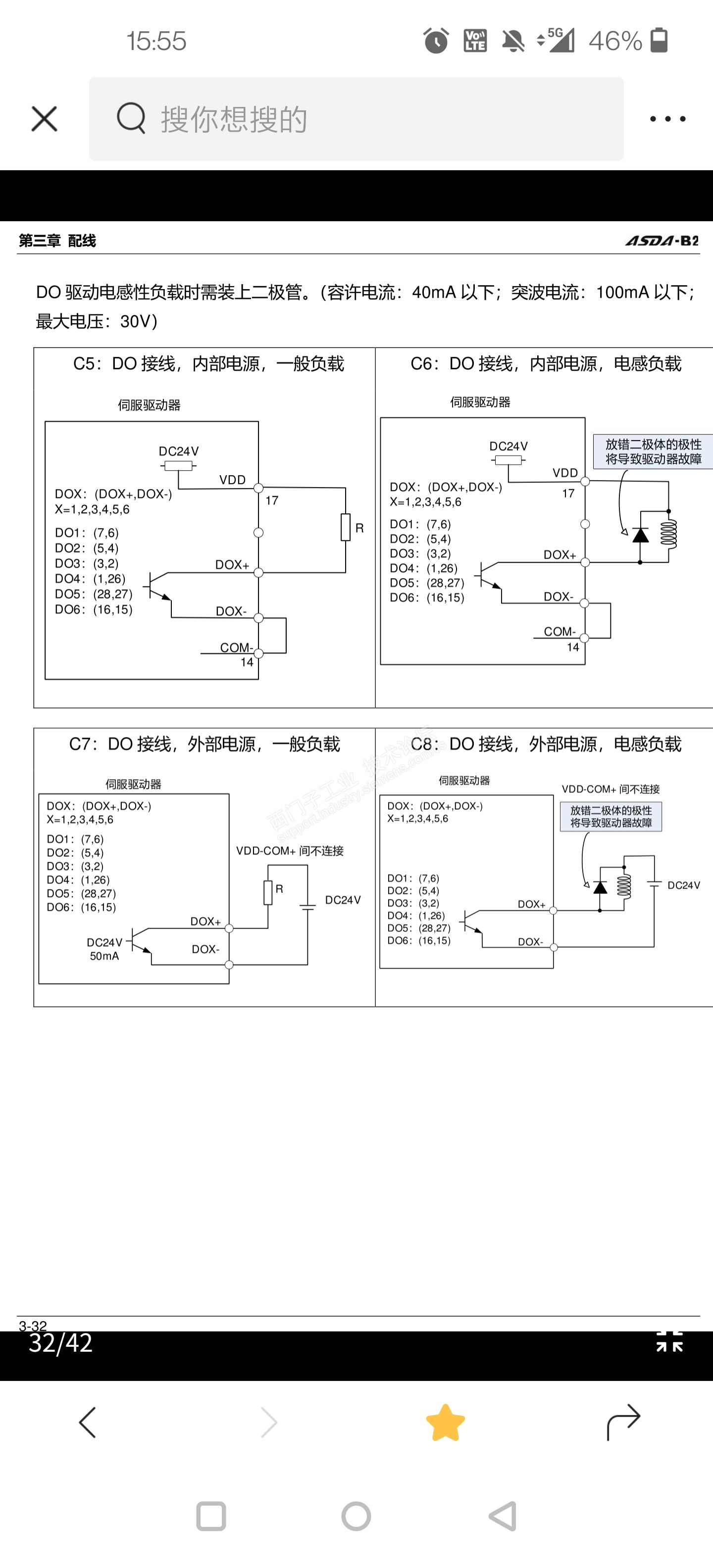 如下图,外部电源接法,拿报警举例,按照图上所示D05+应该接24V,DO5-出来0V给PLC输入I点,但是实际DO-出来的我得到的也是24V,这是为什么,台达官方给的图是错的吗